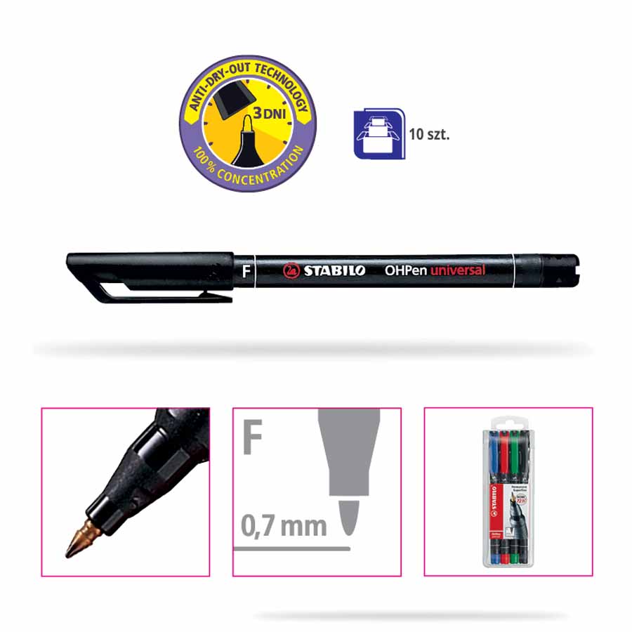 Zakreślacz doskonale sprawdza się na każdym rodzaju papieru, w tym samokopiującym i papierze do faksu. Jego ścięta końcówka zapewnia precyzyjne linie, a tusz na bazie wody jest bezpieczny i trwały.