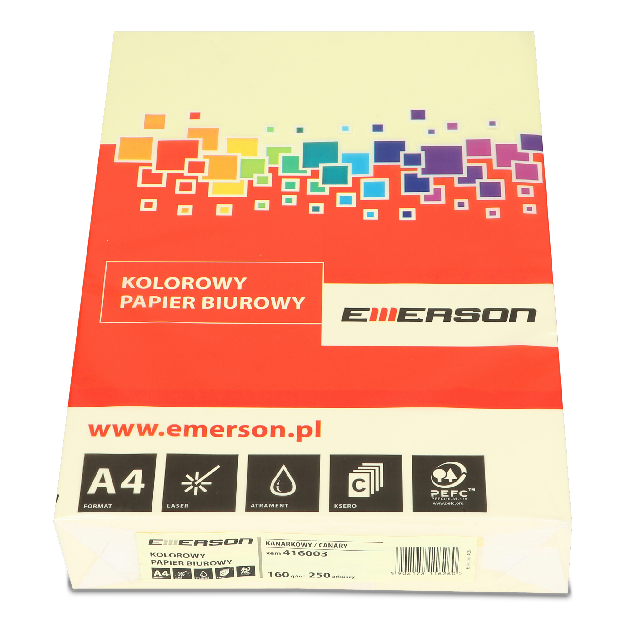 Papier kserograficzny pastelowy Emerson w odcieniu kanarkowym to produkt, który łączy funkcjonalność z estetyką, nadając każdemu wydrukowi wyjątkowy charakter. Ten wszechstronny papier doskonale sprawdzi się zarówno w kopiarkach, drukarkach atramentowych, jak i laserowych, co czyni go idealnym rozwiązaniem dla biur i domowych pracowni. Pastelowy papier uniwersalny Emerson wyróżnia się nie tylko swoją praktycznością, ale także zdolnością do przyciągania uwagi. Dokumenty wydrukowane na papierze w kolorze kanarkowym od razu wyróżniają się swoją elegancją i subtelnością, co jest niezwykle ważne w przypadku materiałów promocyjnych, zaproszeń czy dokumentów oficjalnych. Stonowane barwy budzą zainteresowanie i angażują odbiorców, sprawiając, że Twoje komunikaty będą niezapomniane. Papier ten jest doskonałym wyborem dla osób poszukujących subtelnych, eleganckich barw, które dodadzą klasy każdemu projektowi. Format A4 jest idealny do standardowych zastosowań, a opakowanie zawiera 250 arkuszy, co pozwala na realizację wielu kreatywnych pomysłów. Warto zauważyć, że kolory wyświetlane na zdjęciu mogą różnić się od rzeczywistych, jednak delikatny kolor kanarkowy papieru Emerson zawsze zachwyci swoją elegancją i subtelnością. Wybierając papier kserograficzny pastelowy Emerson, stawiasz na jakość i efektowność. To produkt, który nie tylko spełni swoje zadanie, ale także doda Twoim dokumentom wyjątkowego charakteru, sprawiając, że będą się one wyróżniać na tle innych.