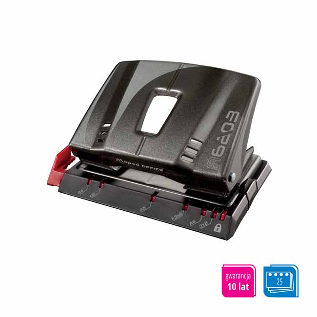 Dzięki podwójnemu wskaźnikowi środka strony i listwie formatowej, dokumenty są zawsze idealnie wyśrodkowane. Dziurkacz wykonuje otwory o średnicy 5,5 mm, z rozstawem 80 mm – to klasyczne parametry, które pasują do większości segregatorów. Dodatkowo, 3-letnia gwarancja daje pewność długotrwałego użytkowania.