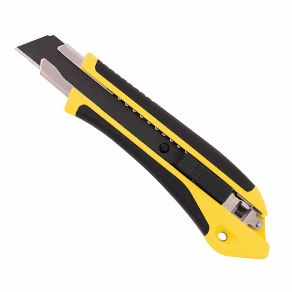 - wyposażony w ergonomiczną, wykonaną z niełamliwego plastiku obudowę oraz automatyczną blokadę położenia ostrza