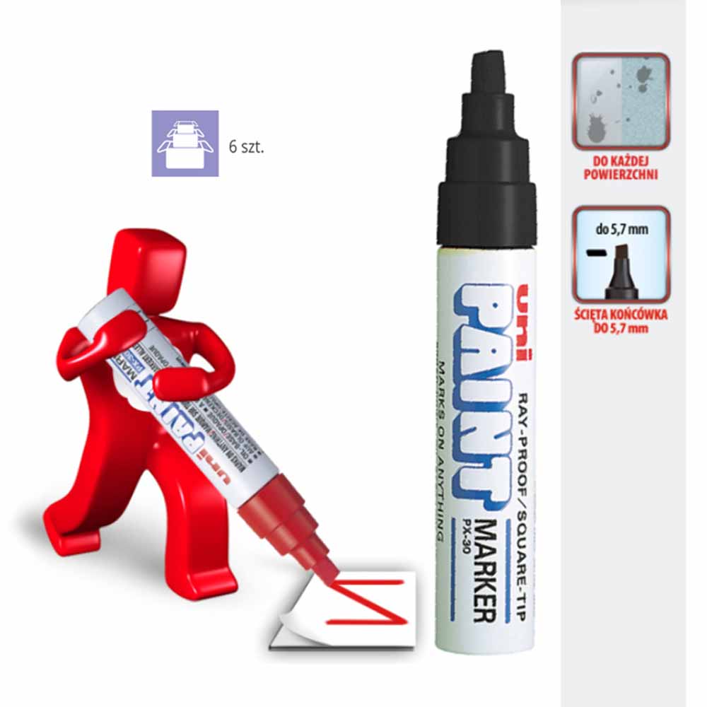 Marker wyposażony jest w okrągłą fibrową końcówkę, która zapewnia równomierne i precyzyjne oznaczenia. Końcówka pompująca pozwala na płynne pisanie, eliminując przerwy w pracy i gwarantując komfort użytkowania.