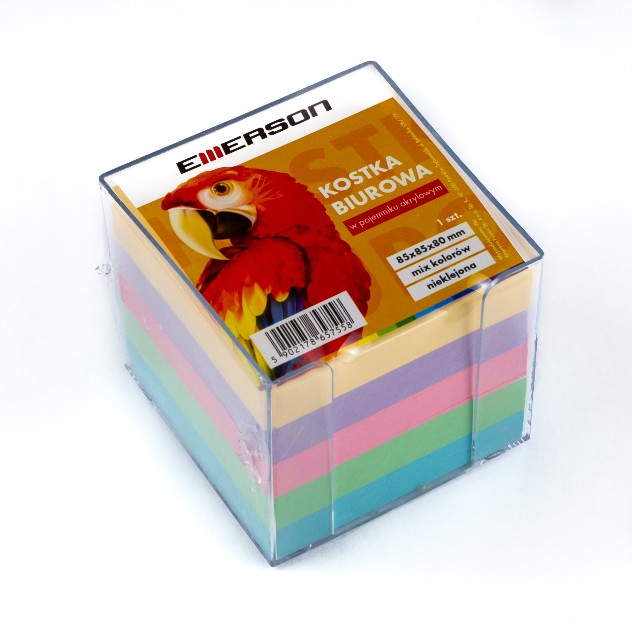 Karteczki w tej kostce są klejone, co umożliwia ich łatwe wyrywanie i korzystanie jako samodzielnego bloczku lub jako uzupełnienie pojemnika na karteczki. Mix kolorów dodaje nie tylko funkcjonalności, ale także estetyki, pozwalając na lepszą organizację notatek i wprowadzając pozytywny akcent na biurku.