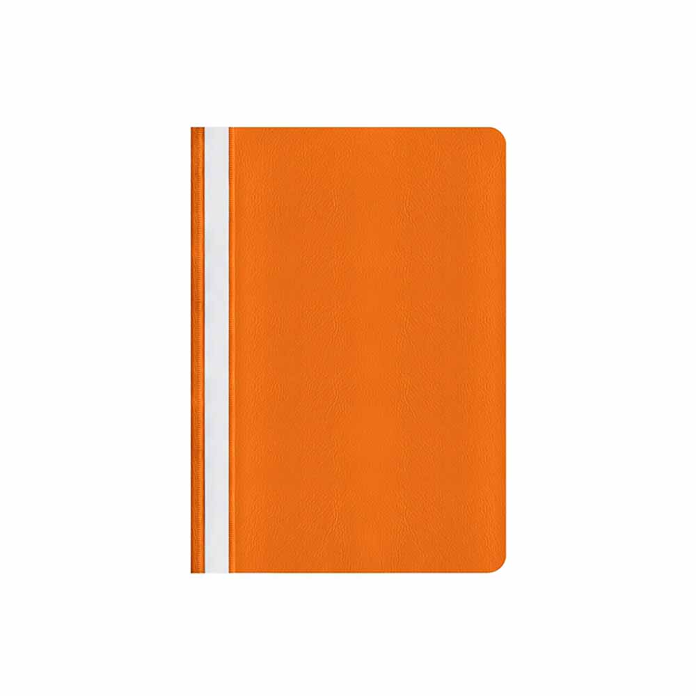Skoroszyt wyposażony jest w wymienny, papierowy pasek do opisu, który ułatwia identyfikację zawartości. Dwa wycięcia umożliwiają szybkie i łatwe wysuwanie paska, co dodatkowo poprawia funkcjonalność. Zaokrąglone rogi obu okładek zwiększają komfort użytkowania i zapobiegają uszkodzeniom innych dokumentów.