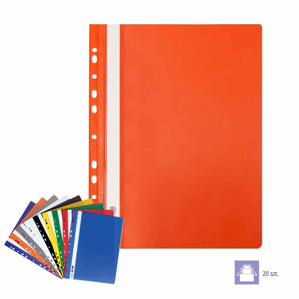 Boczna perforacja pozwala na łatwe wpięcie skoroszytu do segregatora z dowolnym mechanizmem, co zwiększa możliwości organizacji i archiwizacji dokumentów. Wewnętrzna blaszka i wąs o długości 14,5 cm umożliwiają bezpieczne przechowywanie dokumentów o grubości do 20 mm.