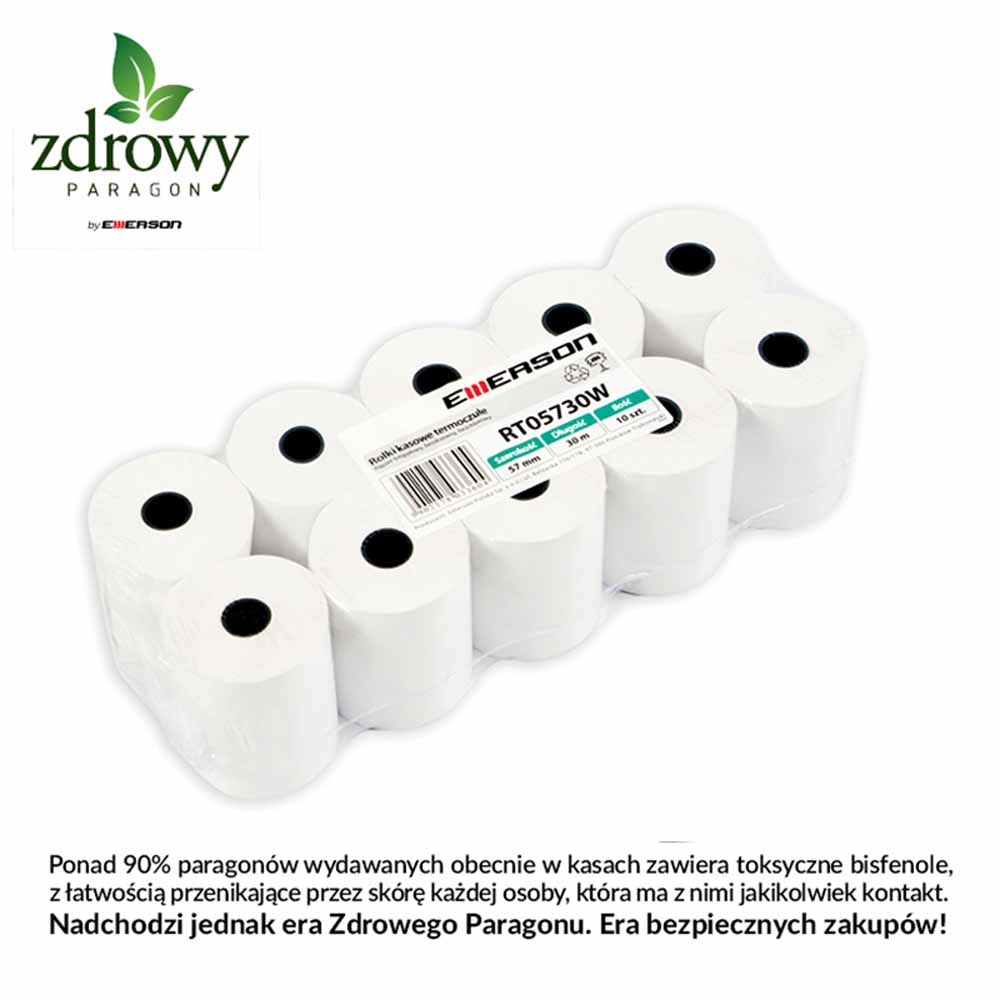 Rolki termiczne Emerson BPA FREE 57mm x 30m to idealne rozwiązanie dla wszystkich, którzy poszukują najwyższej jakości i bezpieczeństwa w codziennym użytkowaniu. Opakowanie zawiera 10 sztuk rolek, które doskonale sprawdzą się zarówno w kasach fiskalnych, jak i terminalach płatniczych.