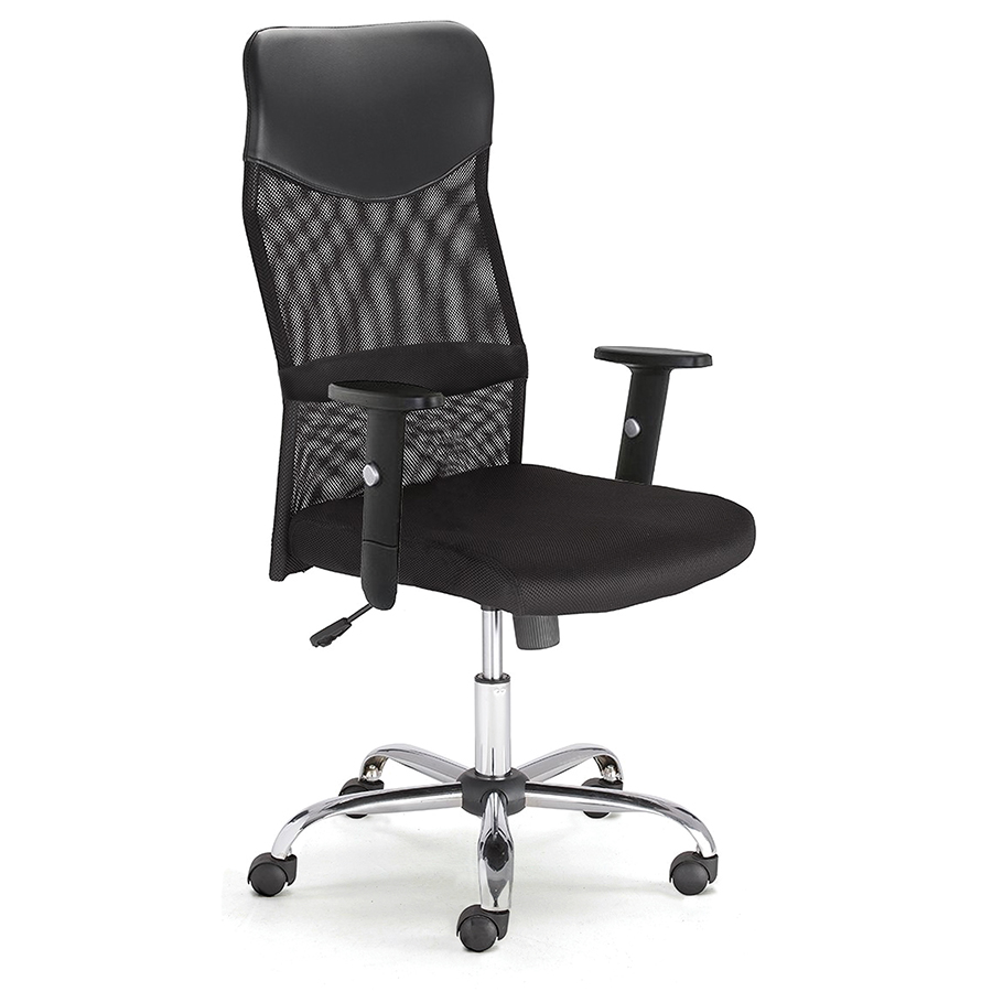 Czarna podstawa jezdna o średnicy 645 mm zapewnia solidność i trwałość, a kółka przeznaczone do powierzchni twardych umożliwiają swobodne przemieszczanie się. Regulowane podłokietniki zwiększają komfort pracy, umożliwiając wygodne ułożenie rąk.